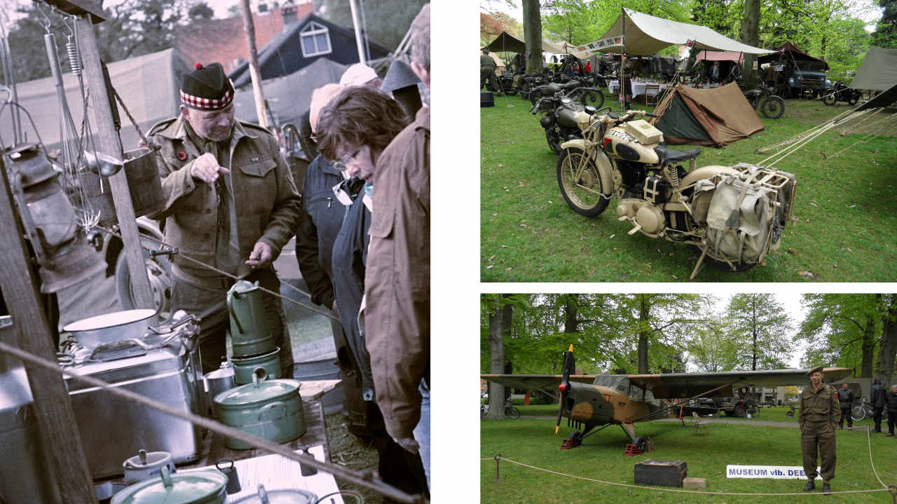 Levende geschiedenis groepen (reenactment groepen) bootsen situaties van de oorlogsjaren zo waarheidsgetrouw mogelijk na in authentieke uniformen en materialen.